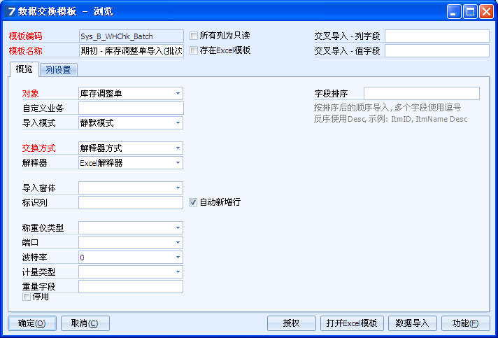 本示例以库存调整单为例,介绍带批次的标准业务单据的EDI模板的制作。